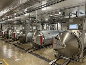 The STERIFLOW Static Cascading-Water Autoclave is a robust, high-performance thermal processing solution, offering uniform cycles, lower mechanical complexity and compatibility with a wide range of packaging types. It is managed by the MPI Expert control system, an industrial PC-based interface. This system automates sterilisation cycles, ensures regulatory compliance, facilitates data export, supports Enterprise Resource Planning (ERP) interfacing with plant systems and provides secure remote diagnostics.