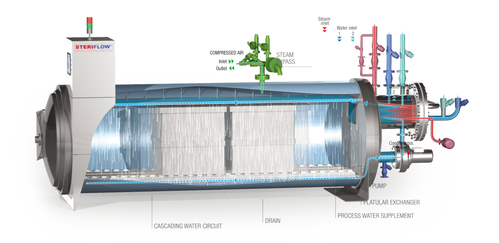 In food processing factories, heat treatment of baby food is carried out using a high-temperature sterilisation process. One of the most commonly used processes for this application is sterilisation by superheated cascading water.